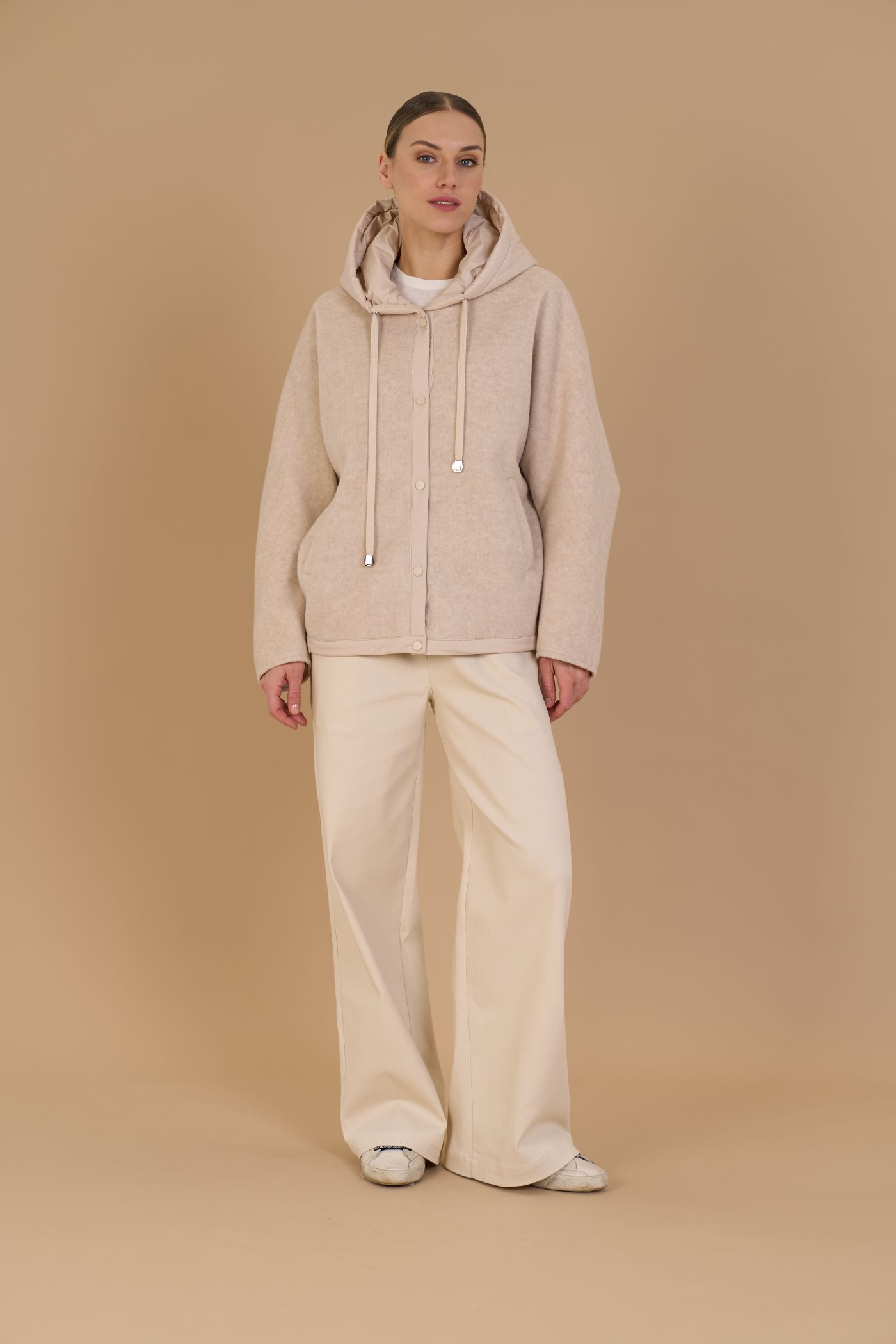 Молочный / Шерсть 100%(Подклад: Вискоза 100%,Капюшон: Полиэстер 100%) / M